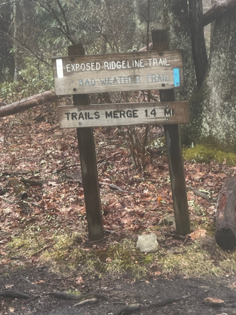 Friday April 7th and Saturday April 8th were a bit of a rough stretch for me. As the rain had progressively gotten worse that day it became harder and harder to keep myself dry (although I must admit that the rain poncho was proving to be just about the best $40 I’d spent on trail). I came upon a fork in the trail on Friday with a sign reading “bad weather trail” and “exposed ridge line trail”. “Pshh how bad could it possibly be?” I thought to myself as my body veered over to the exposed ridge trail. Needless to say, there were moments high up on the exposed ridge where I had to throw my trekking poles down a 10 foot decline. Slowly side stepping a natural slab of stone where the surface had been completely saturated by the rain that day, I had to sit down on my butt and crab walk my way down to a patch of dirt that was about a foot wide. I had undertaken 12 miles that day, making my way into a shelter that was pretty full. However, the people in there were able to shift their stuff over enough allowing me to sleep in the shelter with them. I was able to embrace the comfort of warmth from their body heat as well as the fireplace they had somehow managed to bring to life.