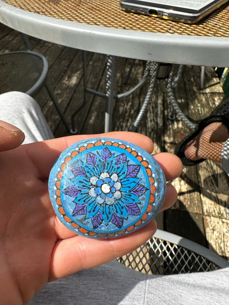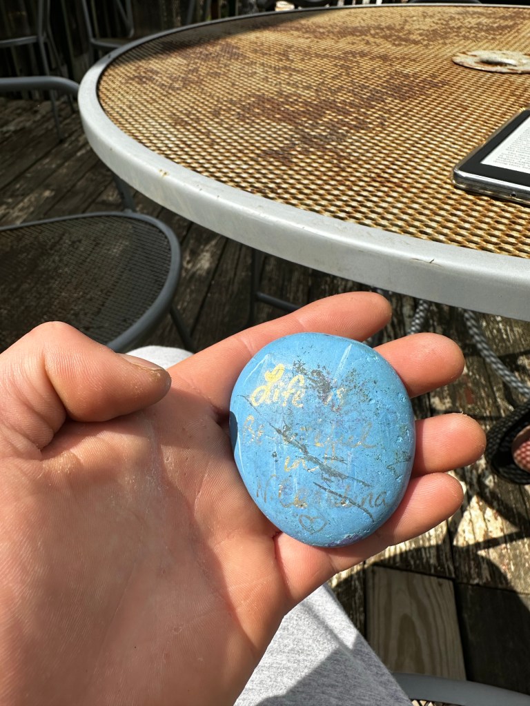 An hour had raced by as I had become engulfed in our conversation. A fitting topic for Easter Sunday. In that window, an older gentleman had made his way through to also take part in the trail magic. He told us his name and I had overheard him speaking about how he missed his family so, saddened by the holiday and lack of presence from those he loved. I had forgotten about the past two miserable days I just had, the fact that my shoes were basically flip flops at this point. I pulled the two beautifully crafted stones from my pocket and held them in my hand as a choice. “Pick one” I said to the older gentleman. He took one of the stones and you could see the light restored in his eyes, his mood seemed to have lifted. I thanked Tyvek Shaman and his wife, they left me with a full belly, spirits lifted, and the first hug I had in over a month.