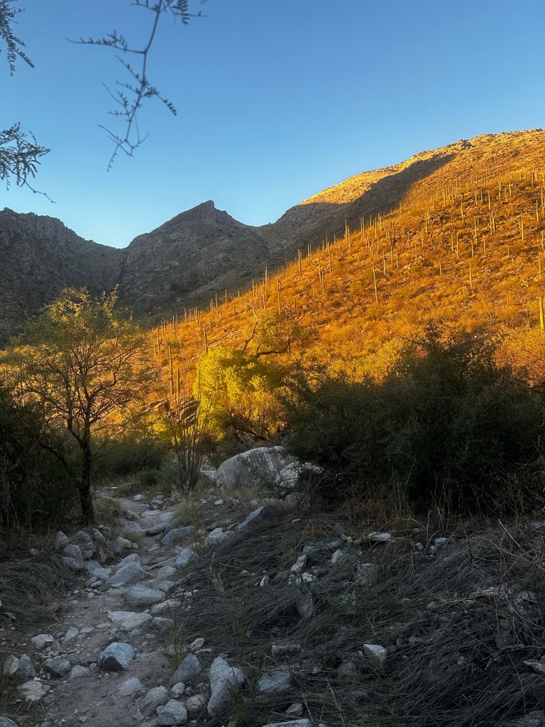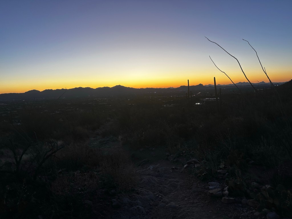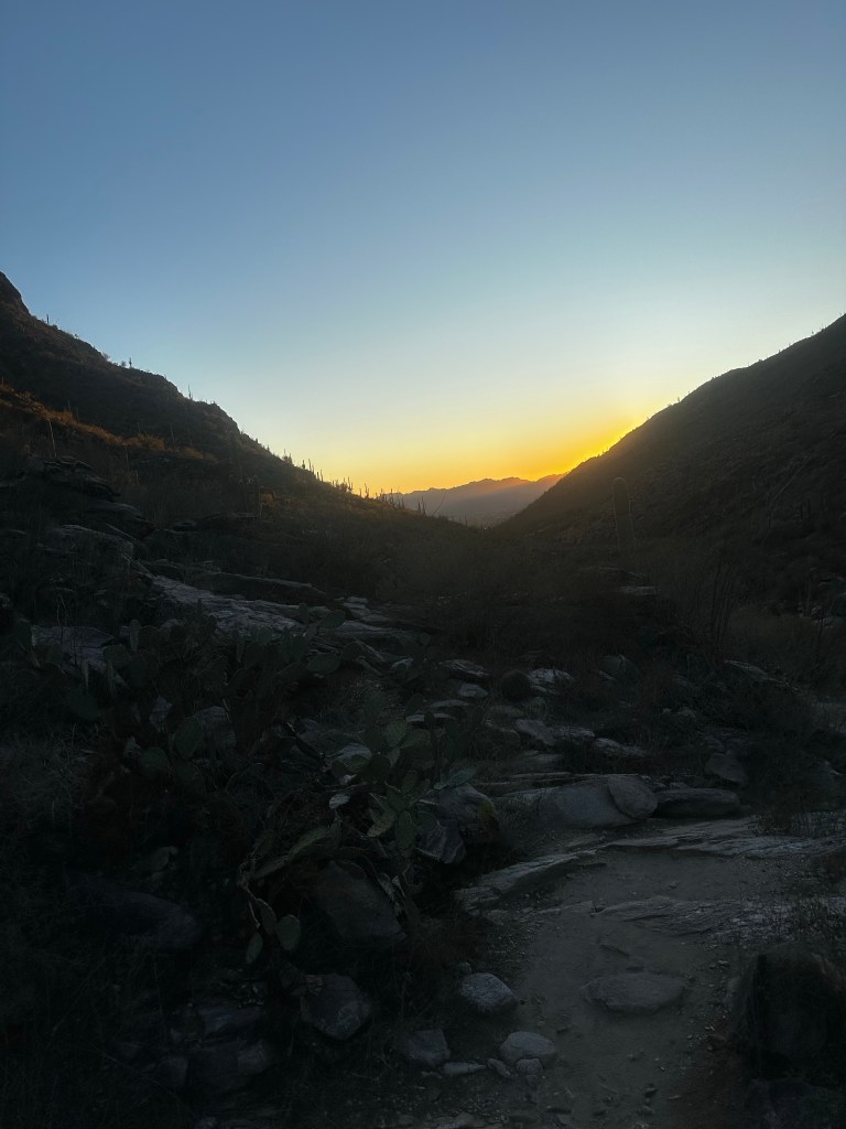 Despite these minor setbacks, there is something to be said about being outside and exerting a decent amount of energy physically. There’s something even more to be said about taking in the moment of a difficult hike, observing how the birds chirp as the sun begins to set and an unnatural being strolls through their natural surroundings. I’ve walked through 14 different states but there is nothing like walking in the desert, surrounded by 50 foot saguaro cactuses with arms spanning 40 feet wide, flowing with a wave like motion of a 70’s disco party. On my way down the mountain I realized that this is part of me, I crave this thing, this movement, this low and this high because when I become consumed with a screen in front of my face I turn into a desolate drone mindlessly maneuvering through life. As I approached the car park I felt an overwhelming surge to run the rest of the way. With my shirt off, hair pulled up in a top knot, and a random stick I found on the hike, I began to rapidly descend, focusing on the ground and the precision of each step. Out of nowhere I looked up to my left and there was a couple sitting down reading together but when they saw me, their eyes left their books and stared at me in bewilderment, as if I were some strange animal in the wild.
