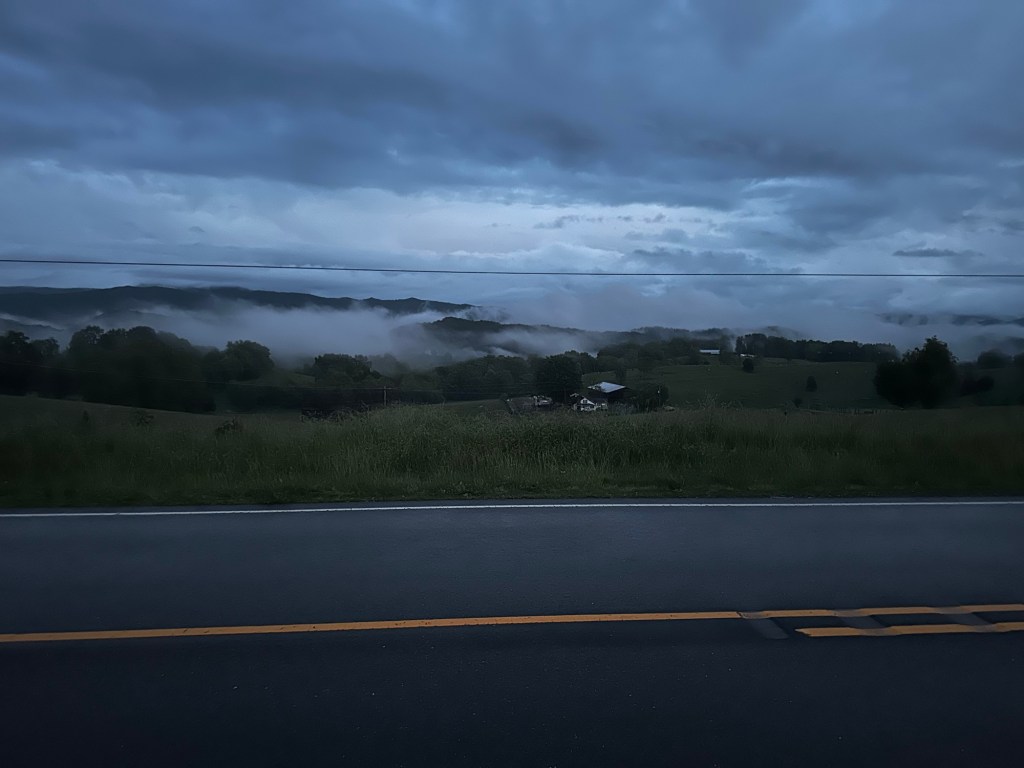 So? What do I do now? Where the fuck is this life taking me? When will I stop enduring for tomorrow and start living for today? I needed out and I needed a get away. To drive with a location in mind but no clear path as to how to get there. Hence, TRAIL DAYS awaits! It is now Thursday, May 16 and I made it to Damascus, Virginia. I didn’t know what to expect upon arrival but as soon as I entered into Appalachia Territory a deluge of rain pierced the sky, blocking the visibility of my drive. Back like I never fucking left! The forecast for the rest of the week reads rain and as the mountains persist to be socked in by daunting and gloomy clouds I arrive. I rolled up to the nearest trail head and tears began to form in my eyes. Stepping out of my car and kneeling down, I clutched a hand full of gravel and rubbed it between my hands. Then I strolled over to a light post with the all familiar white blaze on it and like I did so many times while hiking the trail, gently rubbed my palm over the dried up indicator that I was on the right path and stated “hello old friend”.